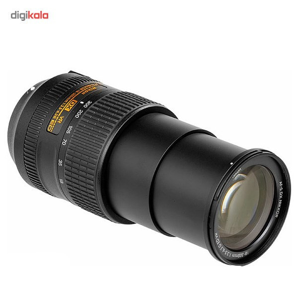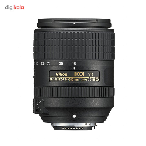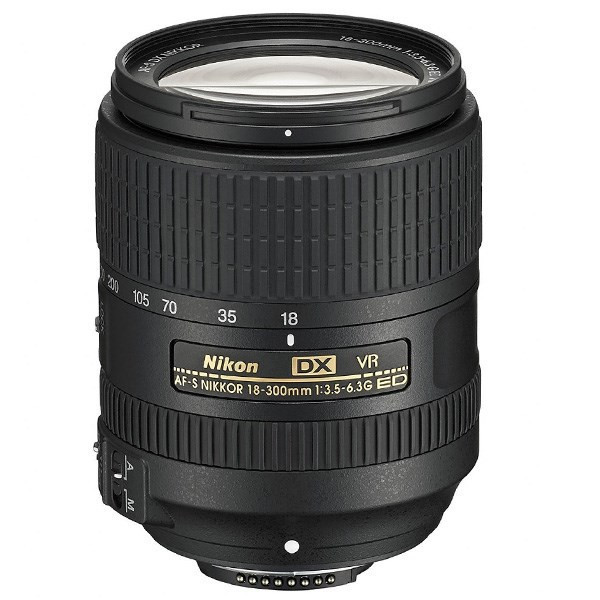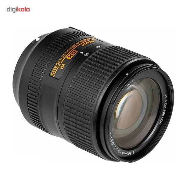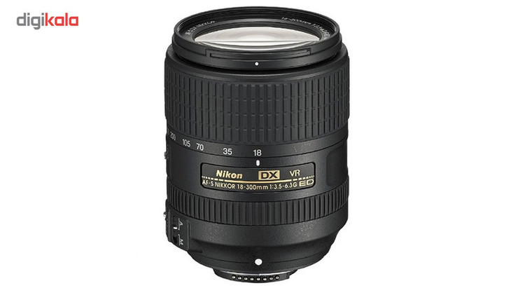 لنز دوربین نیکون 300-18 F/3.5-6.3 G ED VR DX از لنزهای زوم نیکون با دامنه فاصله کانونی بسیار گسترده است. این لنز که برای دوربین های APS-C نیکون مناسب است از سامانه لرزشگیر نیکون موسوم به VR نیز بهره میبرد. دامنه فاصله کانونی این لنز از 18 میلیمتر شروع شده و تا 300 میلیمتر ادامه مییابد. کمینه نسبت کانونی نیز برای این لنز از F/3.5 در وایدترین حالت آغاز شده و در انتهای دیگر با F/6.3 پایان میپذیرد. موتور فوکوس این لنز از نوعSilent Wave Motor بوده که بسیار سریع و بی صدا است و برای کار فیلمبرداری هم مناسب است. این لنز با داشتن دهانه فیلتر 67 میلیمتری و 7 عدد تیغه لبه گرد دیافراگم، 550 گرم وزن دارد. میدان دید قطری این لنز 5.3-76 درجه است. این لنز برای کسانی که قصد خرید یک لنز زوم همه منظوره را برای دوربین APS-C نیکون خود دارند گزینه بسیار مناسبی است.