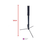 ساختار مستحکم آلومینیومی:** پایههای این سهپایه از جنس آلومینیوم باکیفیت ساخته شدهاند که در عین سبکی، تحمل وزن دوربینهای DSLR و میرورلس را بهراحتی دارد.